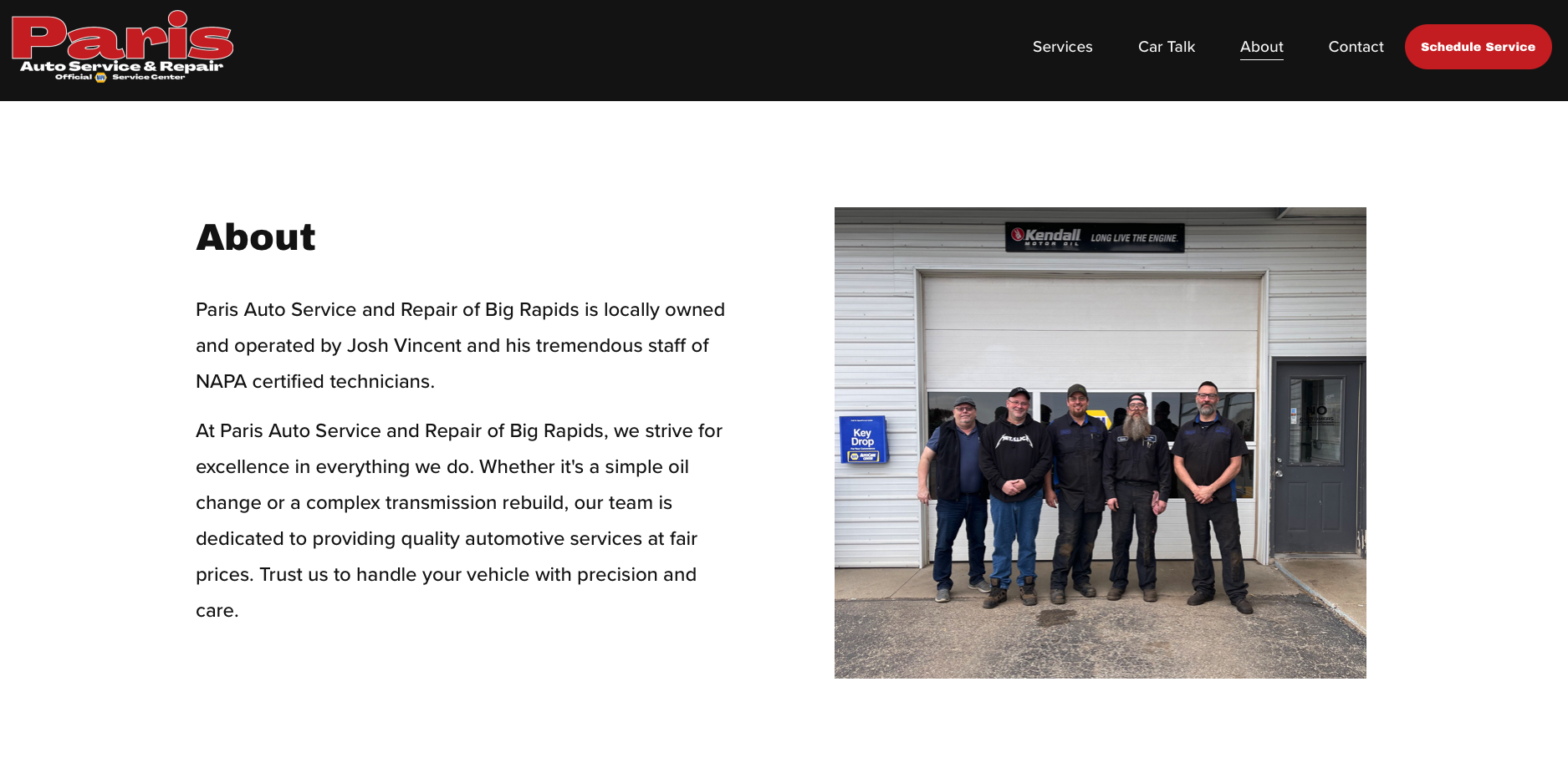 Paris Auto Service and Repair was acquired by new owners who rightly opted to keep the same business name. An entirely new website was required with a means of scheduling service times for potential customers. Additionally with a name shared with a used car sale company in the same building, Paris Auto Service and Repair needed additional help with their organic search results (SEO) so Dasos Digital created a blog and amped up backlinks to help them place higher in organic search results.. Dasos Digital was able to work within budget to accomplish Paris Auto Service’s goals.